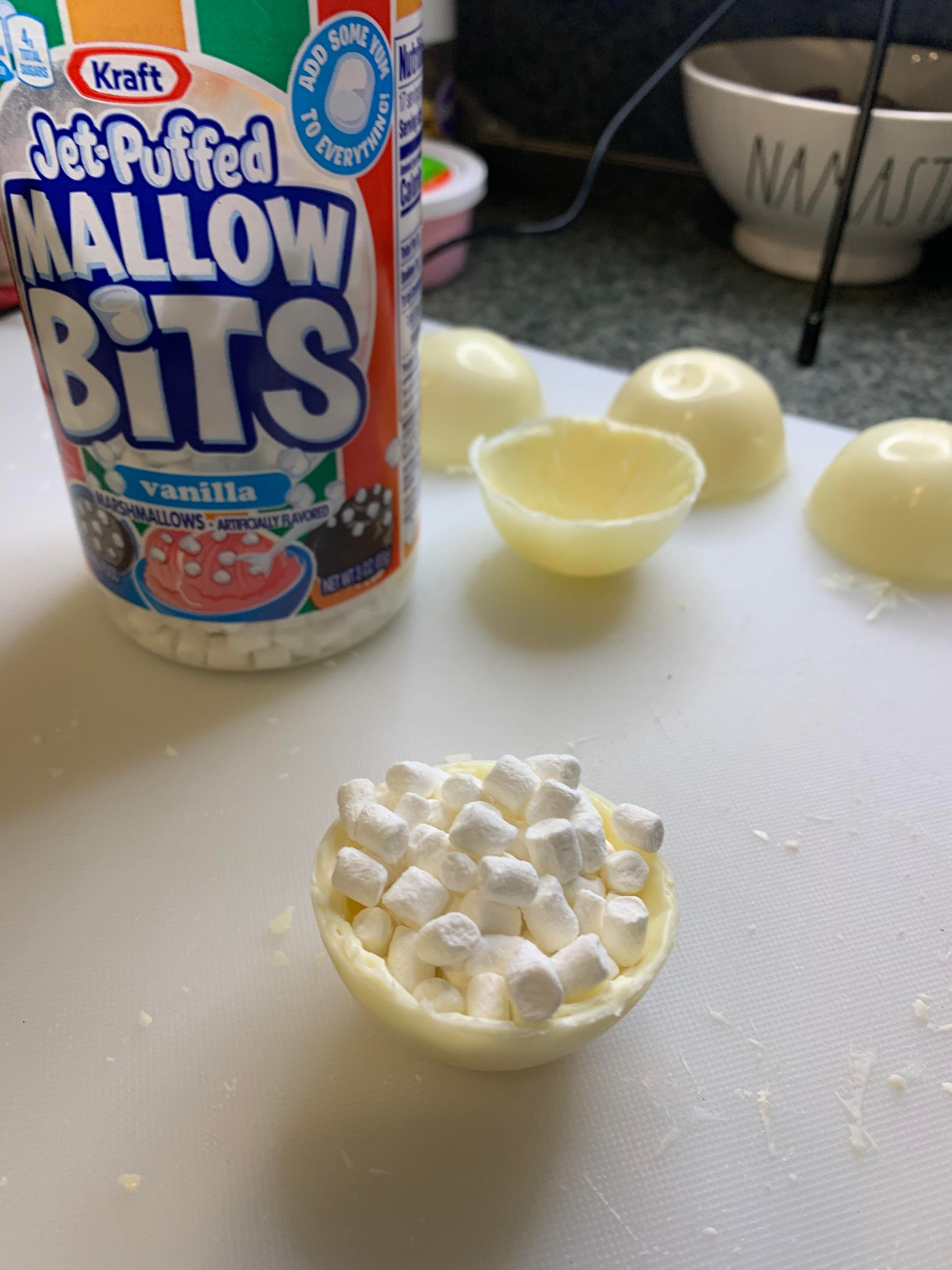 My favorite part of the kit was the huge bottle of Jet Puffed mini marshmallows meant to fill the bombs as well as decorate with. Yes, they are just like the mini marshmallows in kids cereals and we could not stop eating them. This kit definitely requires oversight by an adult but I was pretty impressed seeing my daughter carefully pull chocolate shells from the mold without breaking a single one. And if you do break any (like I did) you can just melt it down and try again. We had to be extra and pulled out our own collections of sprinkles, but once we were down decorating, the final results were adorable! The only drawback is the actual hot cocoa came out very mild. Next time, I would like to add some additional cocoa powder to the bomb for a smoother hot chocolate.